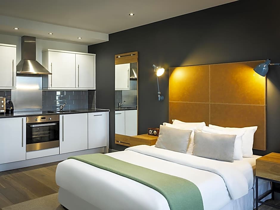 Studio for 2 persons is 323 square feet and includes a queen-size bed 150-154 width.